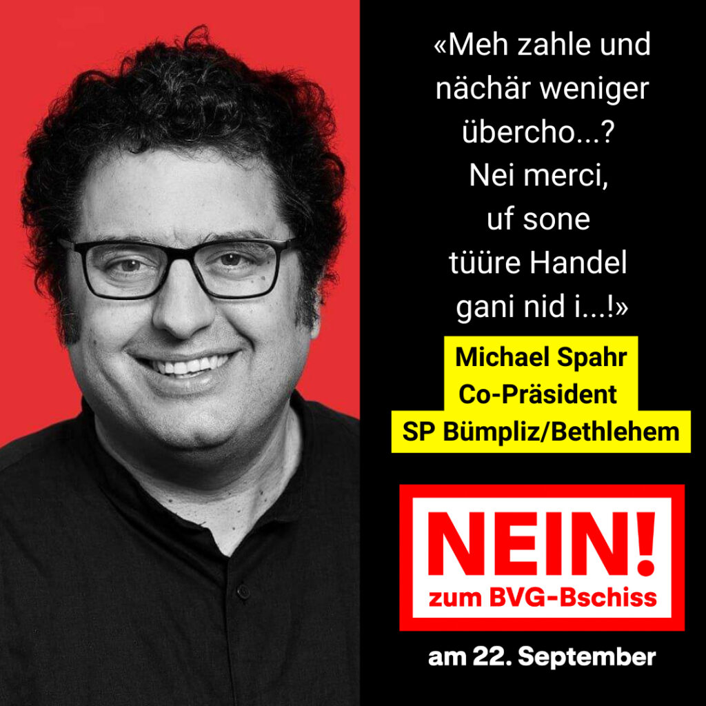 Die Stadtratswahlen finden am 24. November 2024 statt. Bitte schreibe Michael Spahr zweimal auf jede Liste und wähle die Sozialdemokratische Partei der Stadt Bern.